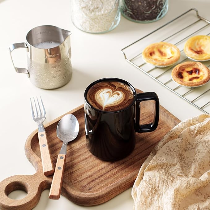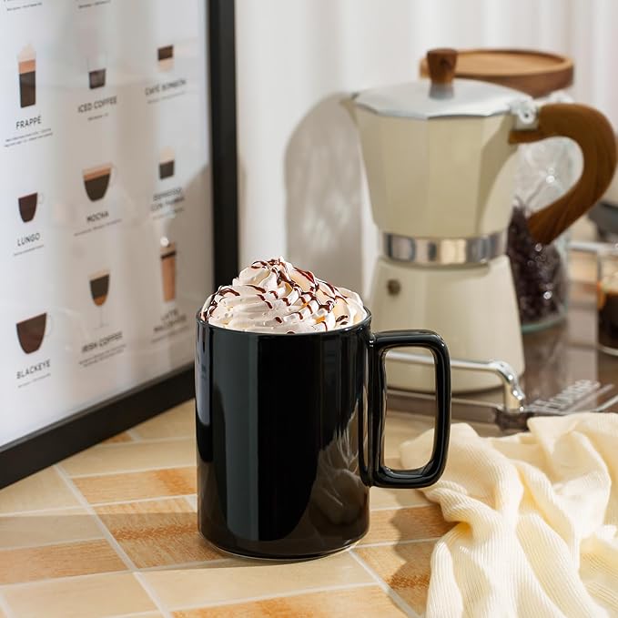 E-liu Porcelain Tea Mugs Coffee Mug Set, Large 15 Ounces Cups for Coffee, Tea, Cocoa, and Mulled Drinks, Set of 6, Black
