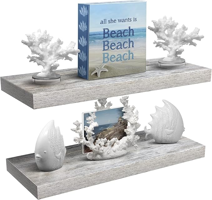 - Free Up Space: Maximize storage space while taking up zero square feet - Reduce clutter and highlight wall decor in compact spaces - The Sorbus Floating Shelves for Wall provides unique shelving solutions to any style home, including coastal decor and beachy decor - Hang in a studio apartment, above a fireplace mantel, or in the living room - Use as wall decor for bedroom, bathroom decor sets, book shelves, bathroom shelf, and more
