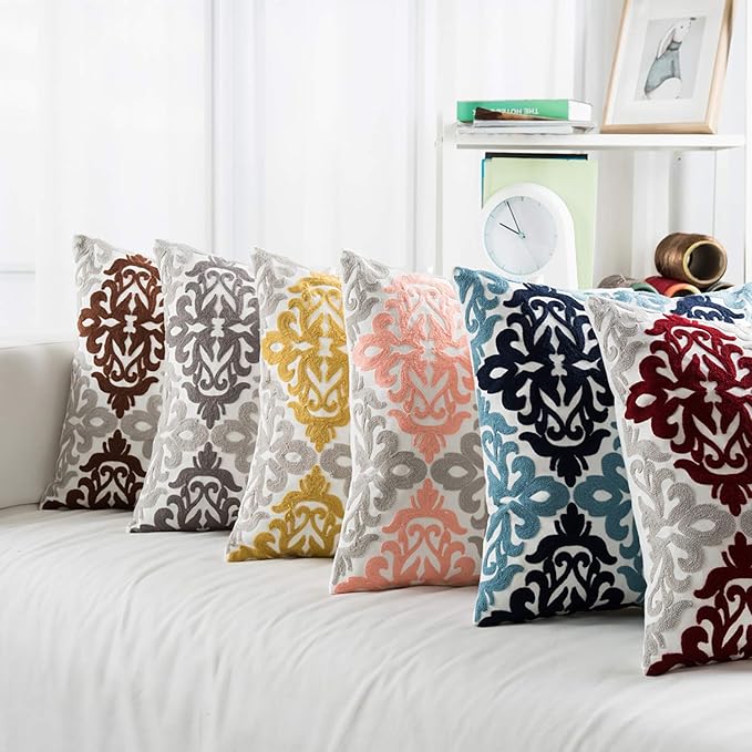 - Premium Cotton Throw Pillow Covers with Embroidery: 18 x 18 inch (45x45cm) square throw pillow covers made of super soft, thick cotton. Features beautiful embroidered designs on the front that add fancy texture to your space - so comfy you'll want to snuggle up!