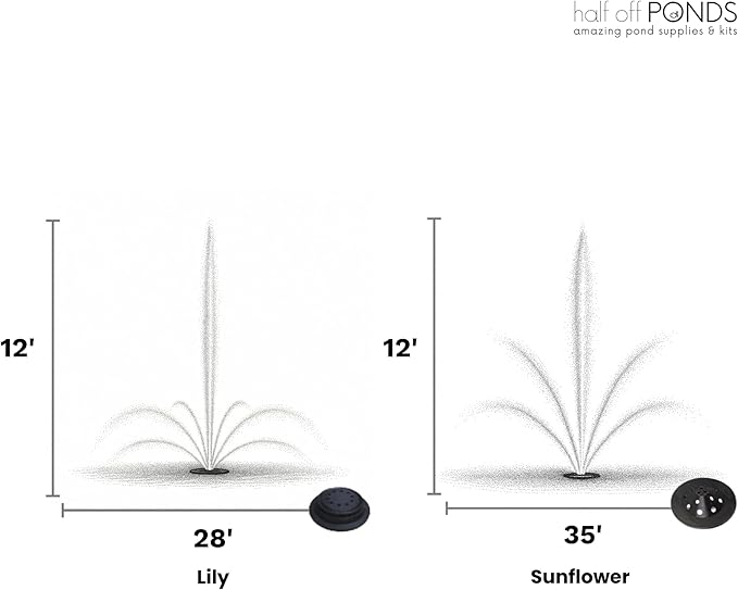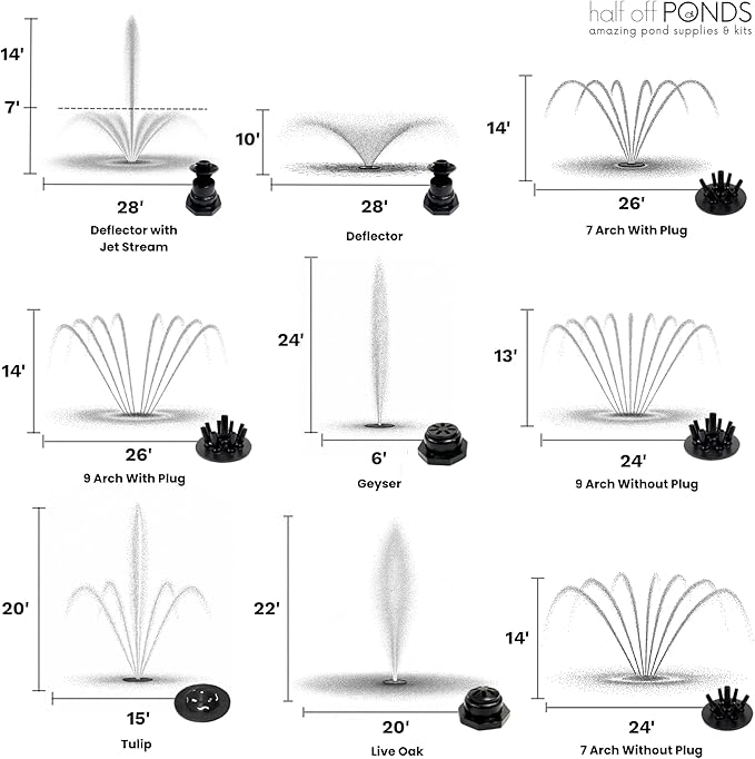- Customizable Spray Patterns – Includes a quick-release nozzle flange and 11 interchangeable fountain spray patterns to enhance your landscape and match your pond’s style.