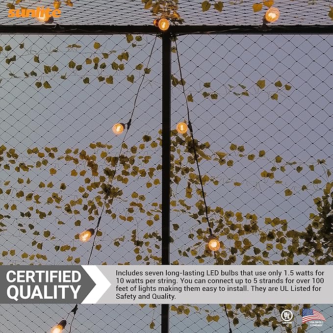 Sunlite 80571 24ft Outdoor String Lights, 1.5W Commercial Grade, Waterproof, Linkable Strands, UL Listed, 7 Hanging Sockets, Shatterproof LED Edison Bulbs Included, 2700K Warm White