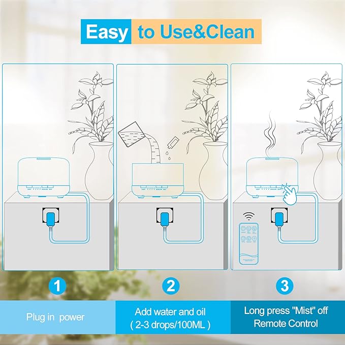 - 👍【Essential oil Diffusers】Our essential oil diffuser is not only uses in aromatherapy, also functions as a humidifier.It helps add moisture into the air, great for large room.