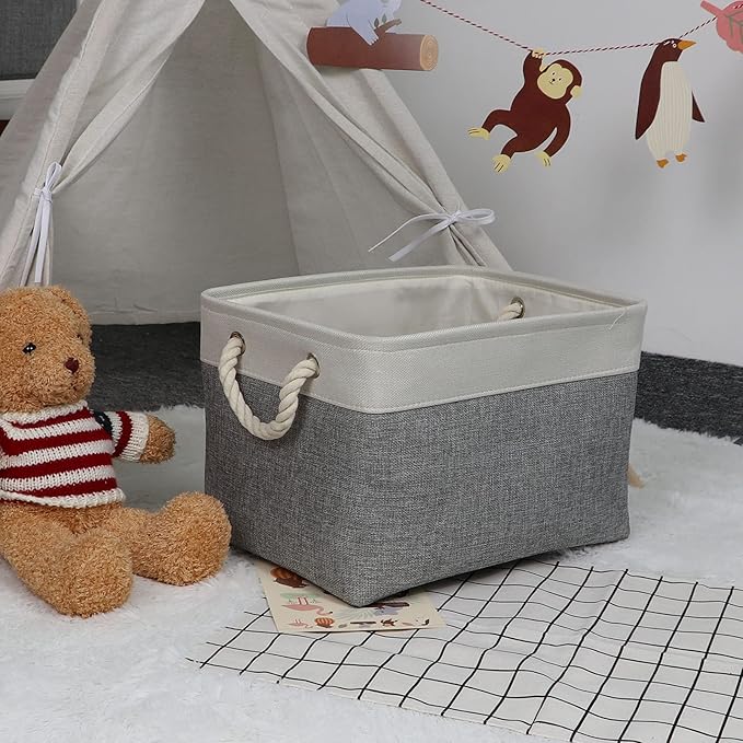 - Set of 3 Large Storage Baskets: The size of each fabric storage basket is 15 x 11 x 9.5 inches. Each Canvas storage bins weighs about 0.7 pounds and can be very light to transport items with less effort. Children can also easily transport their toys. Perfectly fit for most cube organizers, shelves closets or baby change tables. Sturdy and soft fabric baskets for home storage with good abrasion resistance