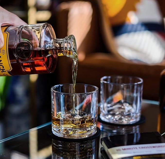 Mount Everest Heavy Crystal Whiskey Glasses Gift Set of 4, Thick Freezable Bourbon Glass 1lb Each, Premium Whiskey Gifts for Men, Frozen Crystal Chills Cocktails, 10 oz