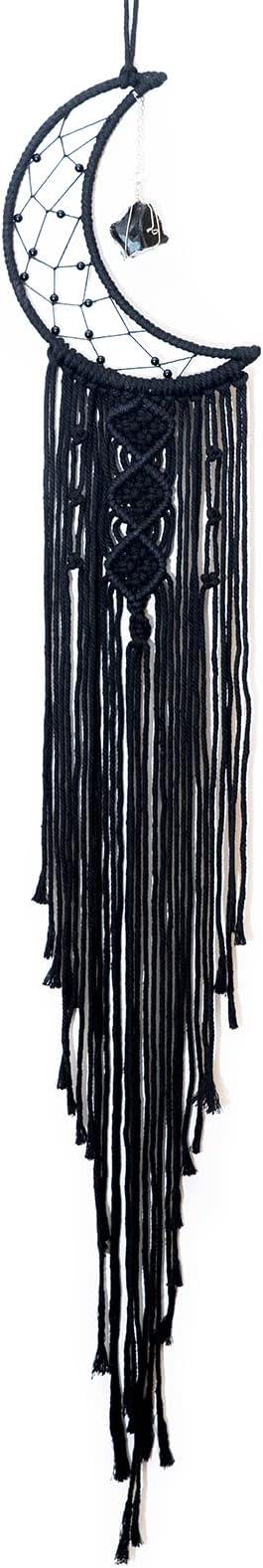 MOONFLY Black Moon Dream Catcher with Handmade Crystal Stone Design Woven Cotton Dream Catchers Boho Macrame Wall Hanging Home Decoration Ornament Craft Gift (Black Crystal Stone Moon)
