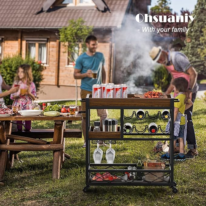 - EASY ASSEMBLY: Detailed instructions make it easy to install. One-year warranty to guarantee your right to select this kitchen bar cart. And please don’t hesitate to contact us if you have any questions.