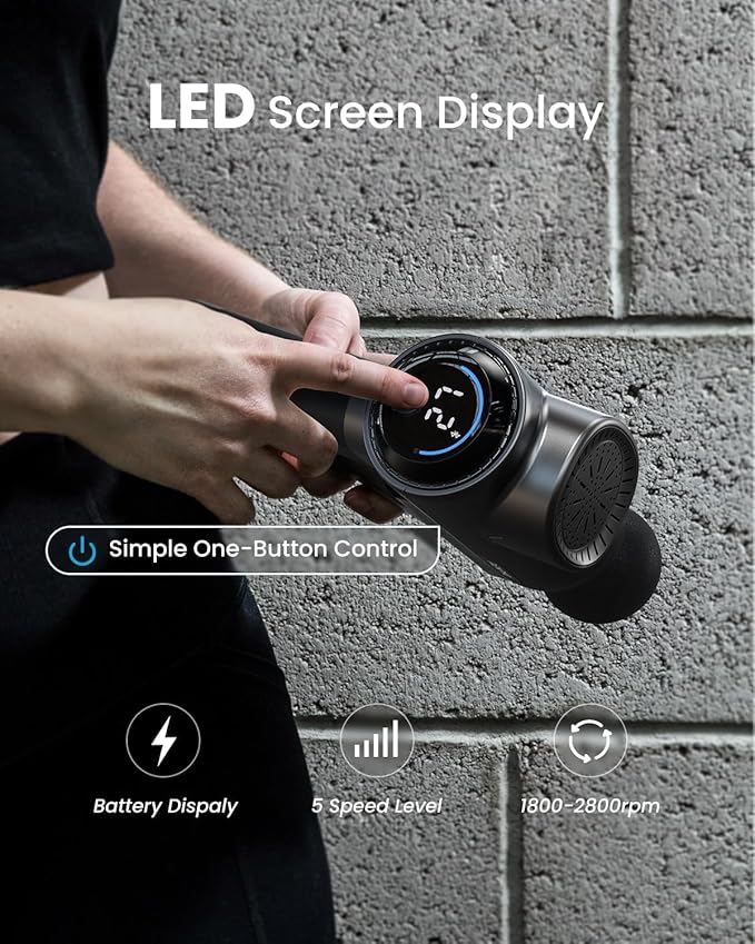 - Portable Massage Gun: The included travel case ensures the muscle massage gun and 5 massage heads are stored together for on-the-go use, making it suitable for home, gym, or office settings with its quiet operation