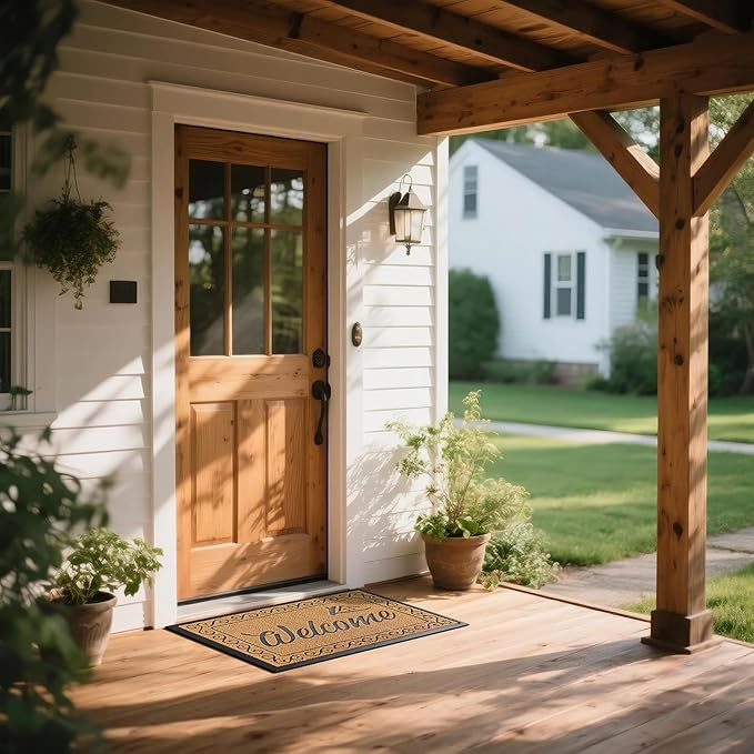 - 【Non-Slip Rubber Backing】: The back of the doormat is made of natural rubber, which has less odor, more tensile strength, and higher tear resistance, this heavy-duty doormat fits perfectly on the floor and helps to prevent slipping when entering and exiting, ensuring your family's safety