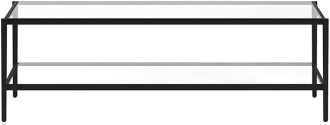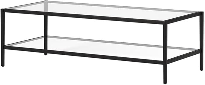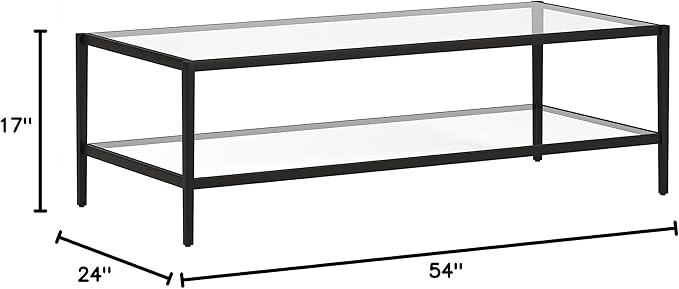 Henn&Hart 54" Wide Rectangular Coffee Table with Glass Shelf in Blackened Bronze, Modern coffee tables for living room, studio apartment essentials