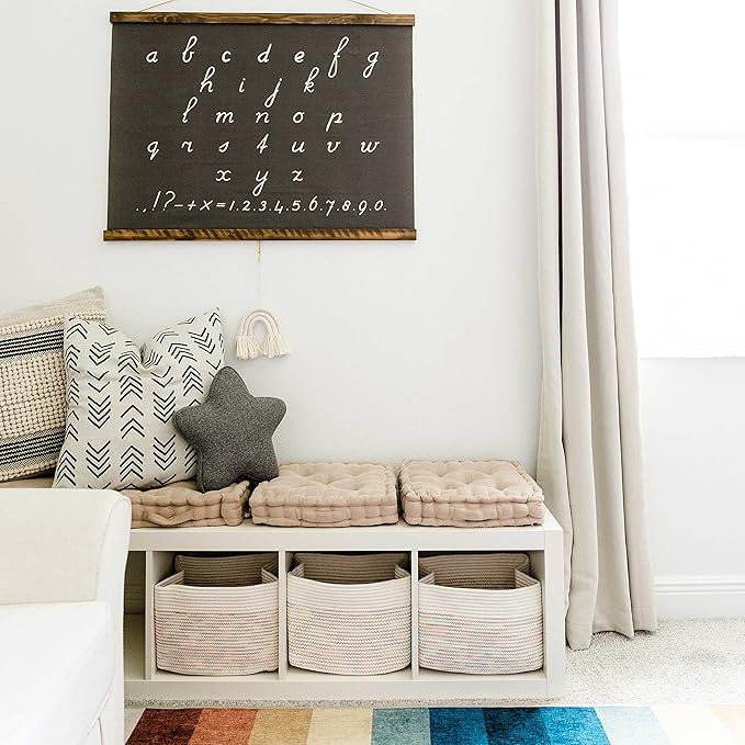 OrganiHaus Woven Storage Baskets for Organizing, Cotton Rope Organizer Bins for Shelves, Closet & Nursery, Dog Toy Basket, Decorative Bins for Toys, Towels & Books - 15x10x9, Rainbow Stitches