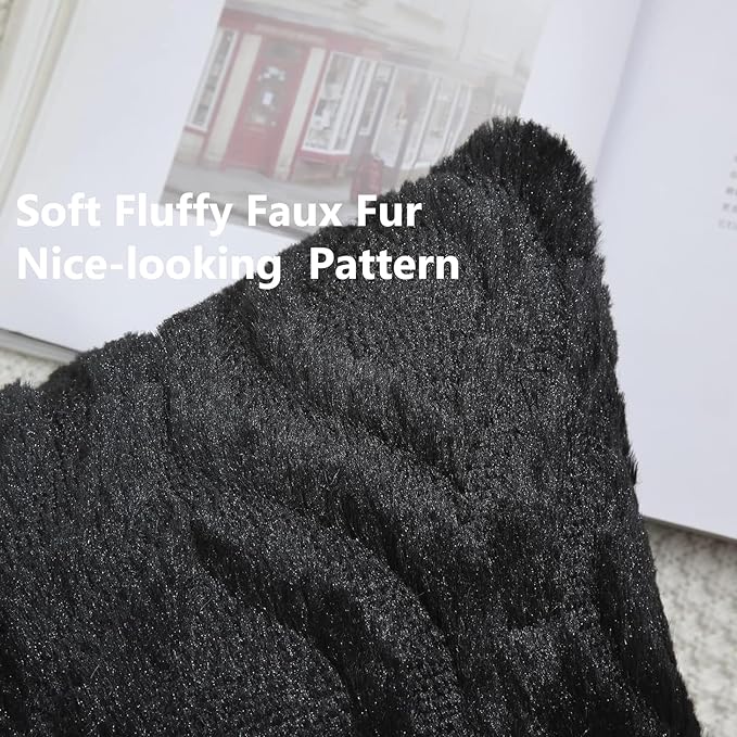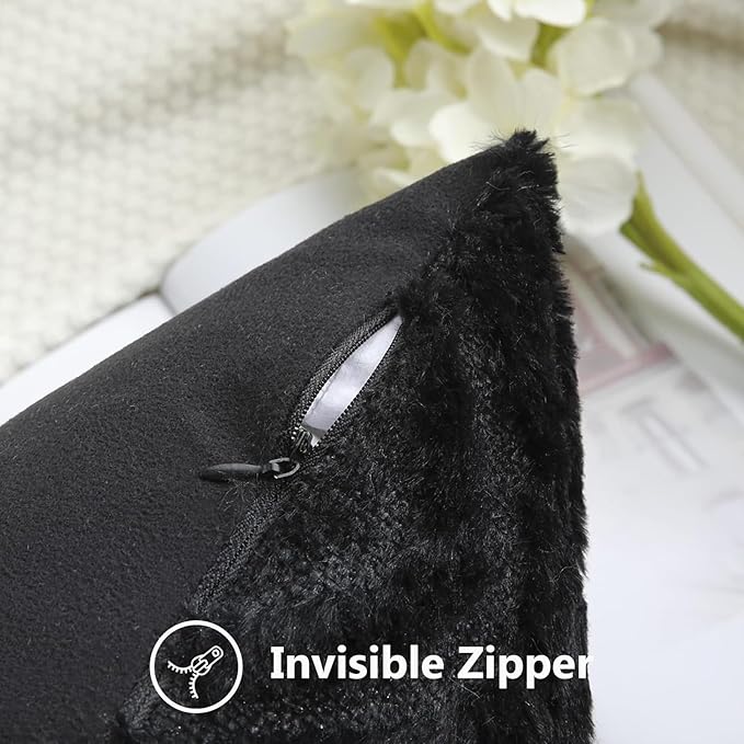 decorUhome Fall Throw Pillow Covers 20x20 Inch Set of 2, Soft Plush Decorative Faux Fur Black Solid Couch Pillow Covers, Accent Farmhouse Neutral Square Euro Pillow Cases for Sofa Bed Living Room
