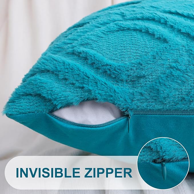 decorUhome Fall Throw Pillow Covers 12x20 Inch Set of 2, Soft Plush Decorative Faux Fur Teal Solid Couch Pillow Covers, Accent Farmhouse Neutral Lumbar Euro Pillow Cases for Sofa Bed Living Room