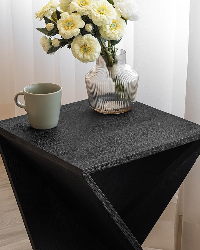 Modern Hand Made One-of-a-Kind Carved Mango Wood End Table, Farmhouse Side Table,Farmhouse End Table,Living Room,Bedroom, Accent Table, Contemporary Architectural Designed Black,Assembled