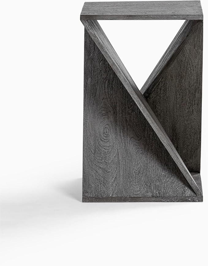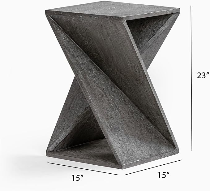 Modern Hand Made One-of-a-Kind Carved Mango Wood End Table, Farmhouse Side Table,Farmhouse End Table,Living Room,Bedroom, Accent Table, Contemporary Architectural Designed Grey,Assembled