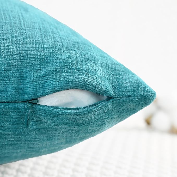 CaliTime Throw Pillow Covers Decorative 26 X 26 Inches Pack of 2 Cozy Chenille Cushion Cases for Couch Sofa Bed Living Room Home Lake Blue