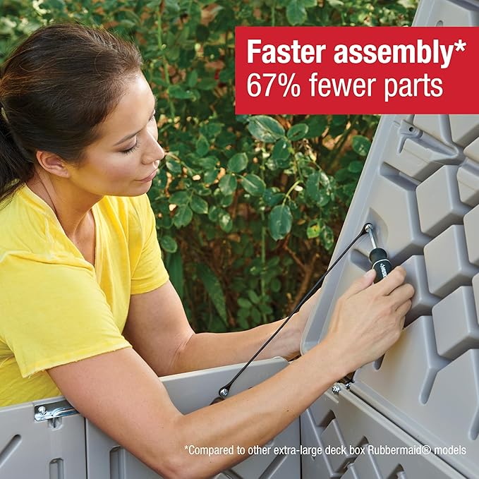 Rubbermaid Extra Large Resin Outdoor Storage Deck Box (134 Gal), Weather Resistant, Gray, Deck Organization for Home/Backyard/Pool Chemicals/Toys/Garden Tools/Porch/Patio Cushions