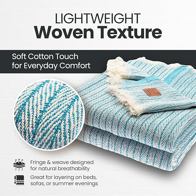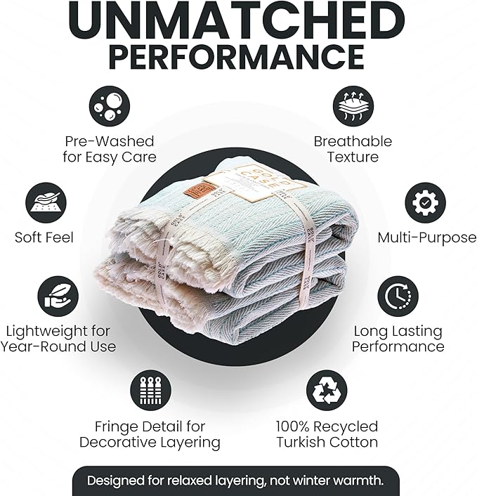 - LIGHTWEIGHT LAYERS FOR RELAXED MOMENTS: Woven from 100% recycled Turkish cotton, this breathable and cute throw blanket adds a soft, textured touch to your space; made for layering on the couch, tossing over your shoulders, or adding a laid-back look to your decor