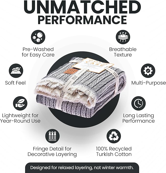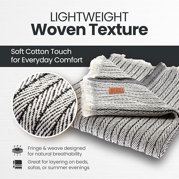 - LIGHTWEIGHT LAYERS FOR RELAXED MOMENTS: Woven from 100% recycled Turkish cotton, this breathable and cute throw blanket adds a soft, textured touch to your space; made for layering on the couch, tossing over your shoulders, or adding a laid-back look to your decor
