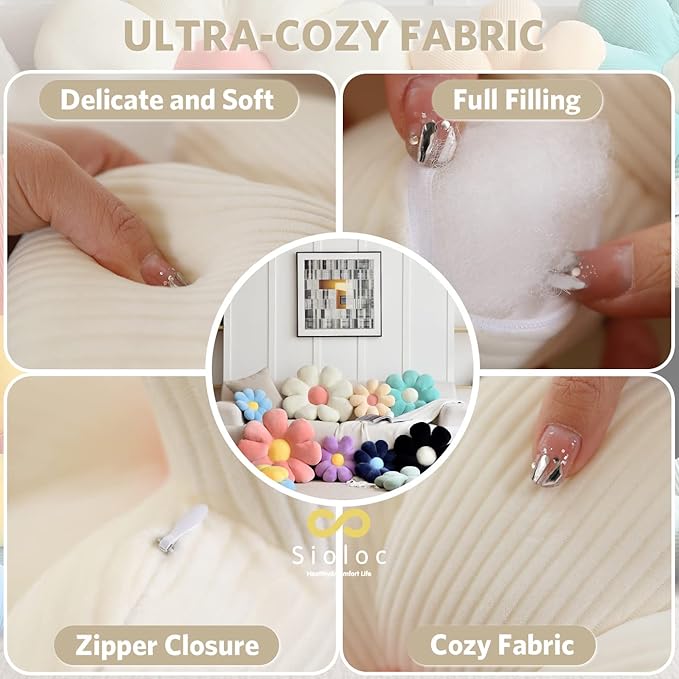 Sioloc Flower Pillow Shaped Throw Pillow Butt Cushion Floor Pillow,Seating Cushion,Cute Room Decor & Plush Pillow for Bedroom Sofa Chair(White,15.7'')