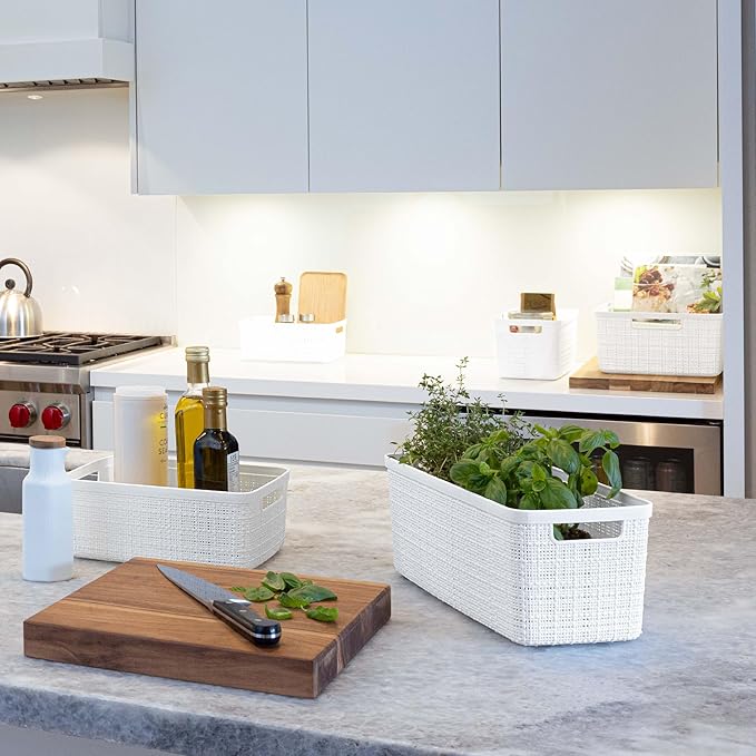 Curver Set of 8 Jute Small Decorative Plastic Organization and Storage Baskets, Perfect Bins for Home Office, Closet Shelves, Kitchen Pantry and All Bedroom Essentials