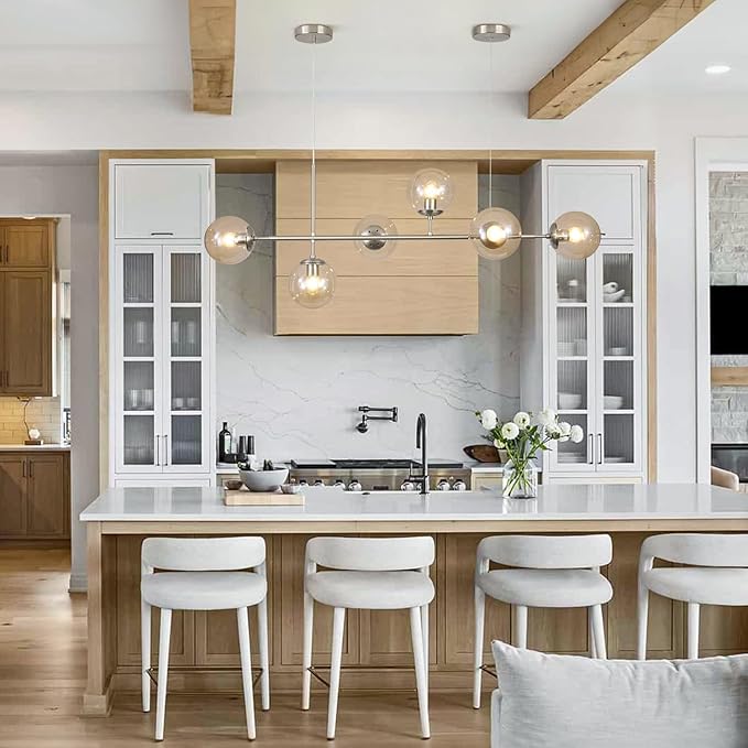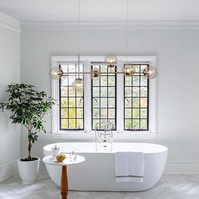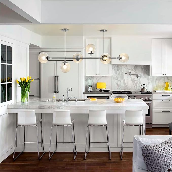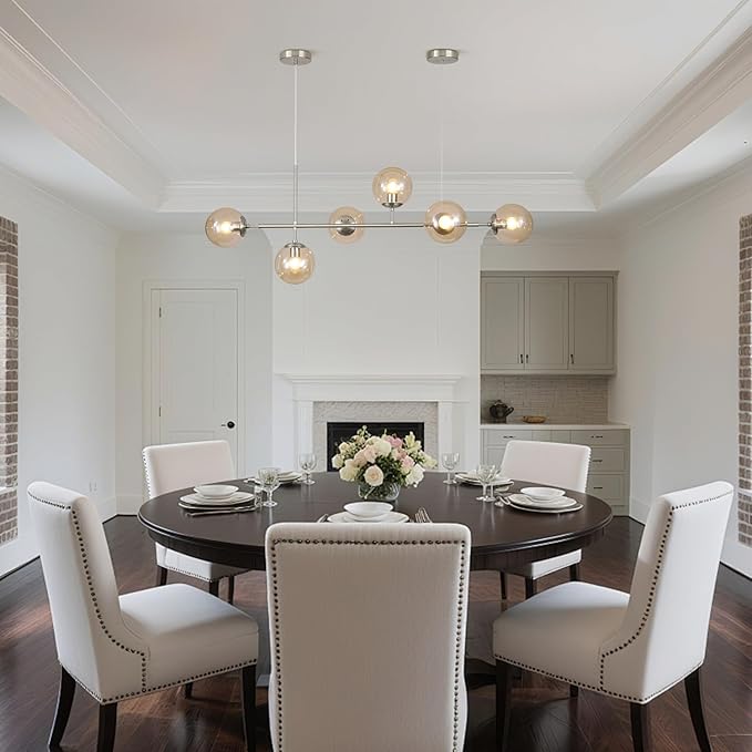 - Dining Room Light Fixture Application: The industrial hanging light emits ample glow to light up the whole space, no dark end. This 6-lights globe linear chandelier is suitable for kitchen island, dining room, kitchen sink, foyers, hallway, bedroom, living room, cafe, restaurant, study room. It’s definitely the best choice for your home lighting