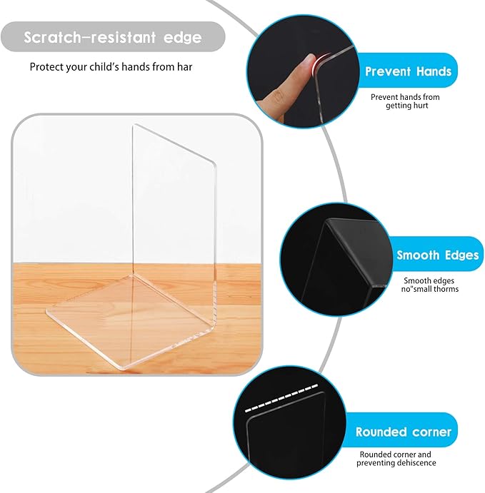 - 【Clear bookend exquisite design】: Clear bookends complement any decoration and seamlessly into any office, allowing you to easily find your favorite books, magazines, etc.adding an elegant touch to your bookshelf or desk.