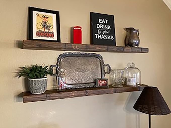 joelsantiques 42 Inch Floating Shelves for Wall - 42x9x2 in - Made of Natural Wood and Easy Install - Heavy Duty Rustic Book Shelves - Perfect for Bathroom, Kitchen, Living Room - Medium Brown