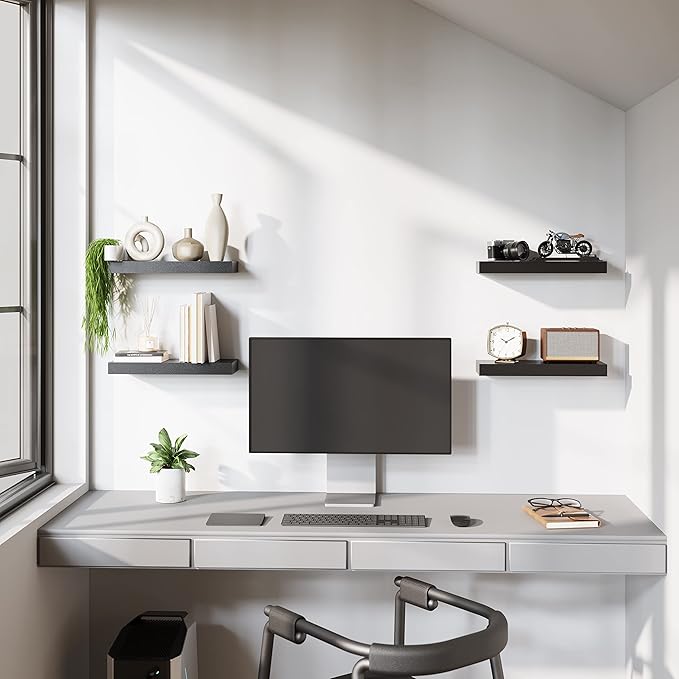 - WIDE SHELF BOARDS: The Bameos Black Wall Shelf will maximize space without taking up any square feet - each board measures 15.7” L x 5.8” W x 1.5” H; Reduce clutter and highlight decor in a compact space - giving the illusion of more space in your studio apartment, dorm room or small living area and so on