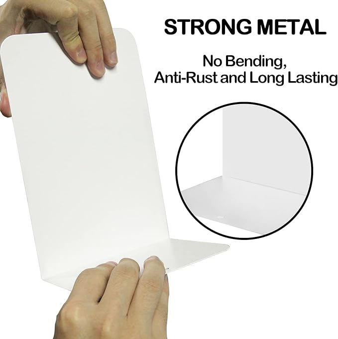 - Sturdy and Durable Bookends: Made from high-tech metal; features 4 padded rubbers on the bottom to prevent slipping; keeps books tidy and upright; indestructible; also prevents the desktop from being scratched