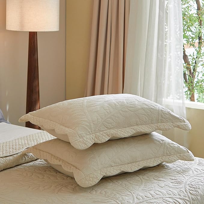 MarCielo 3-Piece 100% Cotton Oversized Bedspread Lightweight Quilt Coverlet Embroidery Farmhouse Bedding Set T0 (Yellowish Beige, Oversized King (118"x106"))