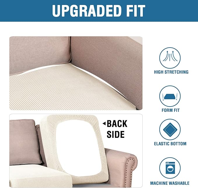 H.VERSAILTEX Super Stretch Individual Seat Cushion Cover Sofa Covers Couch Cushion Covers Slipcover Sets Thick Jacquard Textured Twill Fabric (3 Piece Sofa Cushion Covers, Natural)