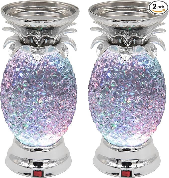 YAKii 9.5" Pineapple LED Color Changing Shine Lamp,Swirling Water Waves Lamp Kid Safe Battery/USB Cable Operated,Table Lamp Candle Holder Table Decoration Silver(Pack of 2)