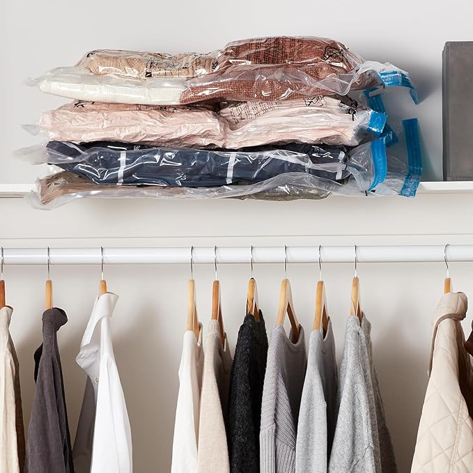 - STORAGE BAGS: Vacuum compression space-saver bags for storing large items such as duvets, bed sheets, blankets, pillows, drapery, and more