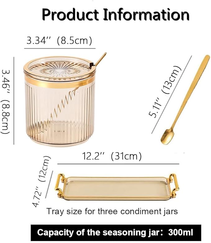 - ▲▲【Independent Jars】: The storage tank set includes 3 containers of the same size (3.34’’*3.46’’), equipped with 3 spoons(5.11’’), a tray(12.2’’*4.72’’). a jar to store a spice, an independent jar, various seasonings are clear at a glance, the kitchen is orderly and tidy, and it is convenient to press at any time. Accessible, no time wasted searching for bags for spices or knocking over spice bottles.