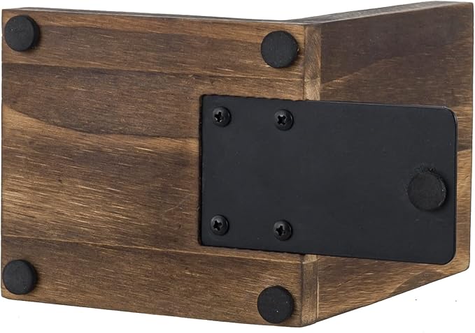 - Rustic L-shaped rustic solid burnt wood bookends with matte black metal wire mesh storage baskets are perfect for holding and displaying your literature collection and your pens, pencils or stationary on your desk, shelf, bookcase, table, and countertop