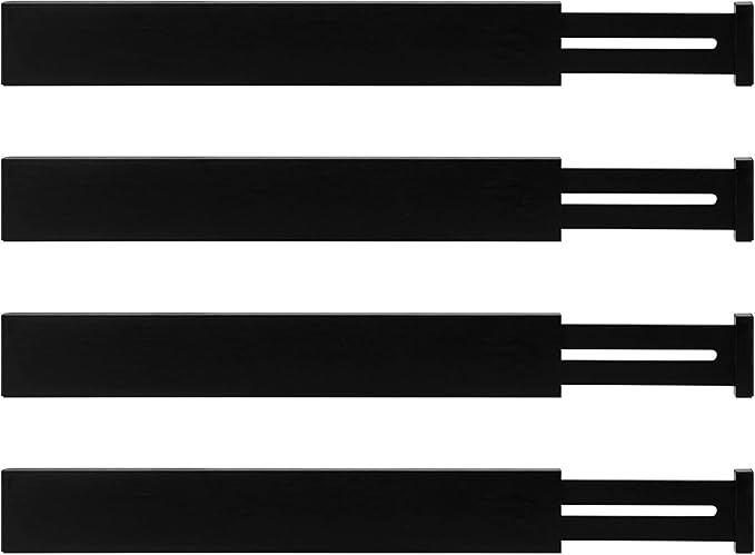 Utoplike 4 pcs Bamboo Kitchen Drawer Dividers Large, Adjustable Black Drawer Organizers, Spring Loaded, Works in Kitchen, Dresser, Bathroom, Bedroom, Drawer, Desk, 2.4" H