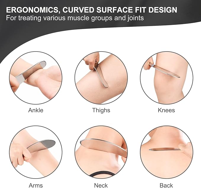 - RELIEVE SORENESS: This stainless steel gua sha tool effectively relieves muscle soreness, knots, and tightness through gentle scraping and massaging of soft tissues.