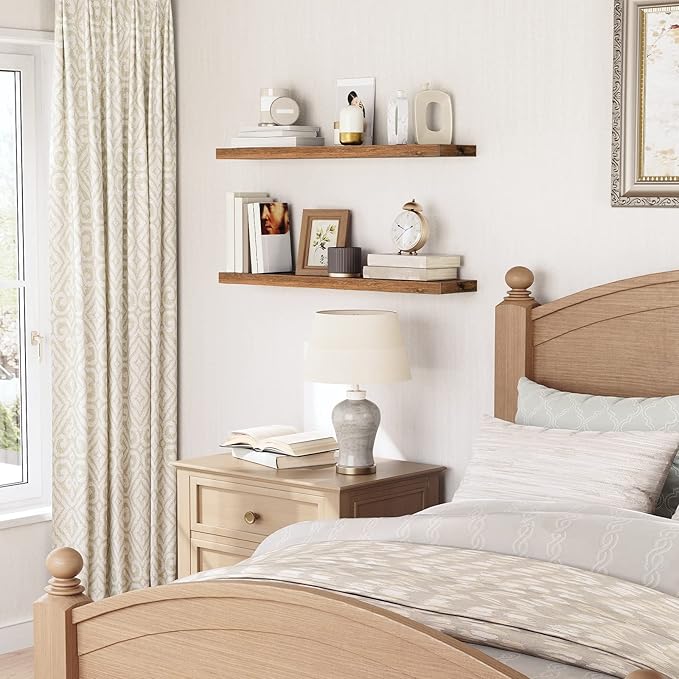 - Exquisite Wall Surface Decoration: Two classic and elegant retro brown wooden shelves can be placed on each wall surface of all household rooms. This floating shelf for room wall is not only for its decoration effect, but also for this wall shelves high practicality. It is an ideal place to display your beloved photos, trophies and other delicate ecorations