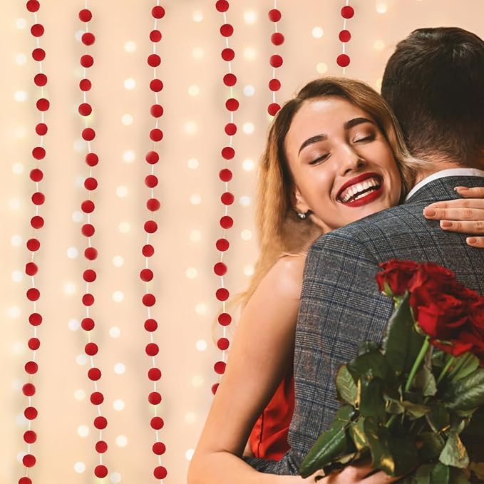 - RED FELT BERRY CHRISTMAS GARLAND PACK OF 3: Each Felt Ball Pom Pom Garland contains 24 Pom Pom Balls, 6.6 feet/ 2m long and the Pom Pom Ball is 25mm in diameter, no knots in the felt pom pom garland, so the distance between the felt balls and the length of the garland can be adjusted. Jishi 3 strands of elegant felt ball garland set will meet your daily, festive holiday, christmas, birthday and parties decoration needs. NOTE: Winding Risk May Exist, Please Keep Away from Kids Under 3 Years Old.