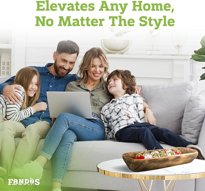 - VERSATILE HOME DECOR: Bring rustic charm to your home with this wooden dough bowl. Ideal as a centerpiece for your dining table, a key bowl for the entryway, or a decorative wood bowl to hold potpourri. Its timeless, long wooden design elevates any space with rustic elegance, making it suitable for all home decor styles.