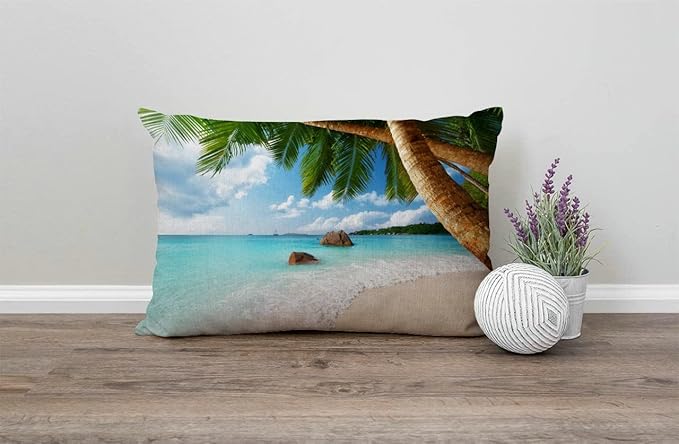 Farmhouse Decorative Outdoor Throw Pillow Covers for Couch Sofa Bed Tropical Palm Tree ANSE Lazio Beach at Praslin Island Pillow Cover Modern Decor Pillow Case 12 x 20 Inch Jcp133