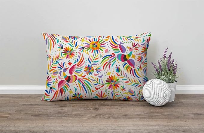 12x20 Inches Pillow Covers Rustic Farmhouse Decor Mexican Floral Pillowcases Cotton Linen Ethnic Art Birds and Paisley Flowers Throw Pillow Case Cushion Cover for Sofa Couch Bedroom