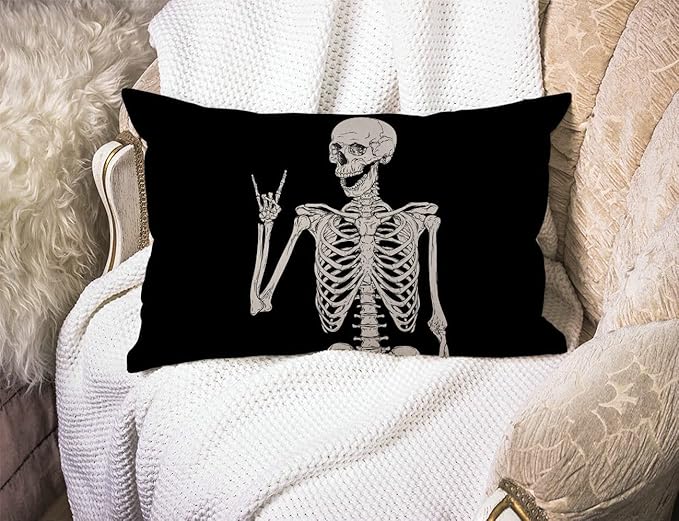 Skull Human Skeleton Lumbar Throw Pillow Cover 12x20 Inch Decorative Bedroom Living Room Human Skeleton Posing Rectanglar Cushion Case for Bed Sofa Couch