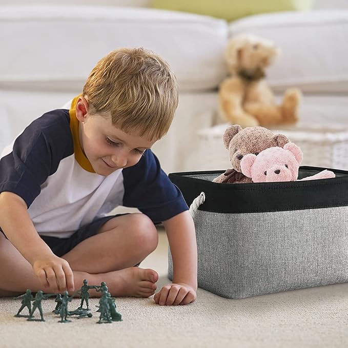 TcaFmac Storage Basket for Organizing - Large 4 Pack Canvas Decorative Storage Bins Baskets for Shelves with Ropes, Foldable Storage Cubes for Closet Cloth Toy Linen(Black & Grey 16x12x8 inch)