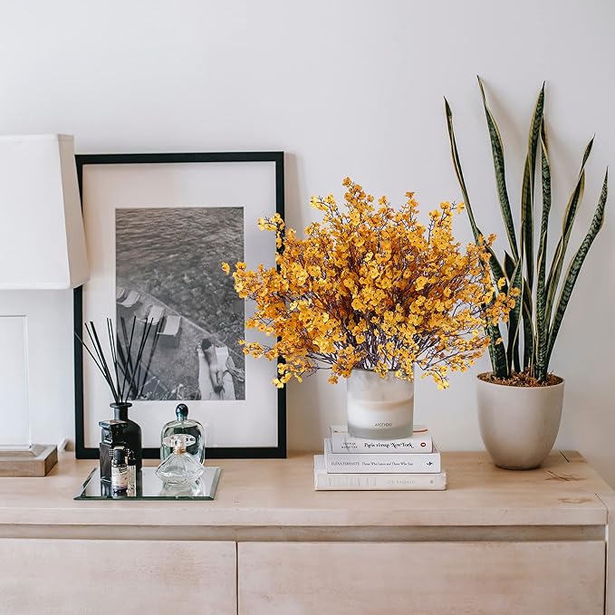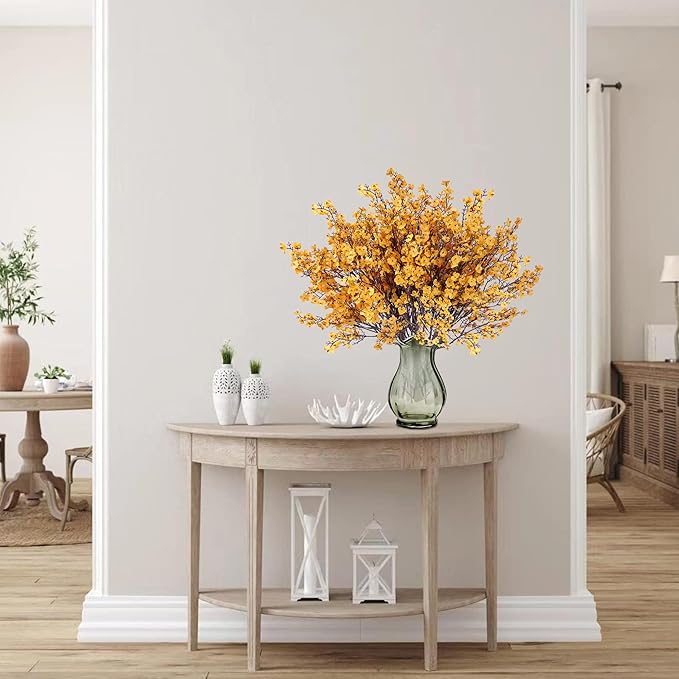 Sggvecsy 15 Pcs Babys Breath Artificial Flowers Gypsophila Bouquets Real Touch Fake Silk Flowers for Home Wedding DIY Floral Arrangement Table Centerpiece Thanksgiving Autumn Decoration (Orange)
