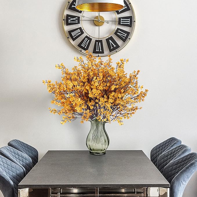 - PACKAGE & SIZE: The package has 15 orange babys breath (no vase included) packed in a box, adequate enough to match many holiday ornaments and satisfy your diverse. The real touch fake silk flowers have a total length of 19in. Each piece has 5 item parts, allows you to decorate your space easily.