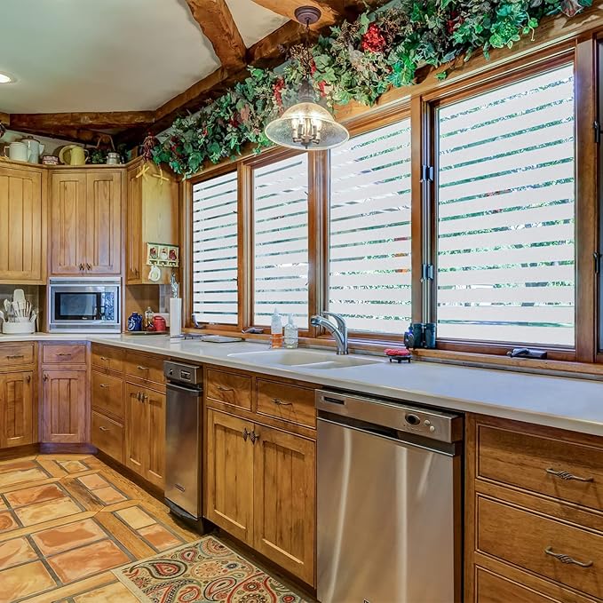 Window Privacy Film, Stripe Window, Film Static Cling, Anti UV, Heat Control, Ideal for Home Shower Office Glass Door (Stripes Pattern, 17.5X78.7Inch)