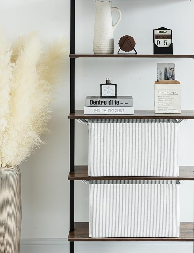 StorageWorks Storage Bins, Fabric Storage Bins for Shelves, Extra Large Storage Baskets with Metal Frame, Closet Baskets and Bins with Handles, Jumbo, Gray and White Stripes, 2-Pack
