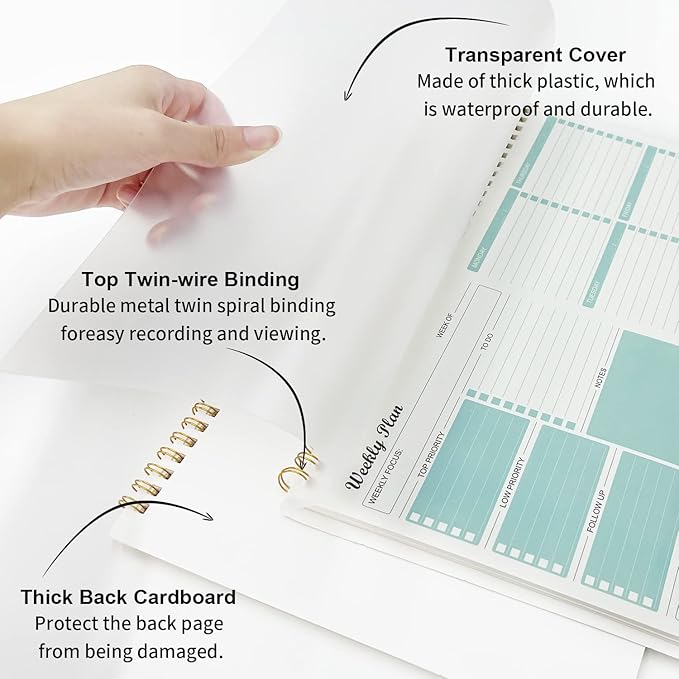 - ✍POPULAR PERFECT SIZE The size of this weekly planner is 8.5x11 inches for 52 weeks which is large enough for your scheduling and appointments. A perfectly portable weekly planner journal for work, home, school, and travel is a perfect gift.