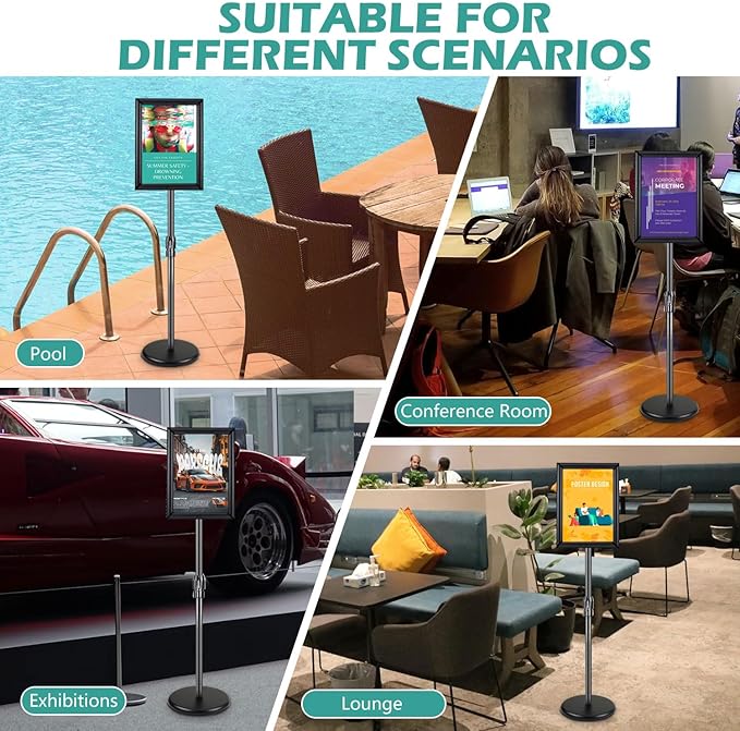 - Excellent Display Sign Holder Stand: The sign holder is ideal for weddings, trade exhibitions, concerts, retail stores, hotels, shows, schools, and more. It stands firm on various hard surfaces, making it suitable for both indoor and outdoor use